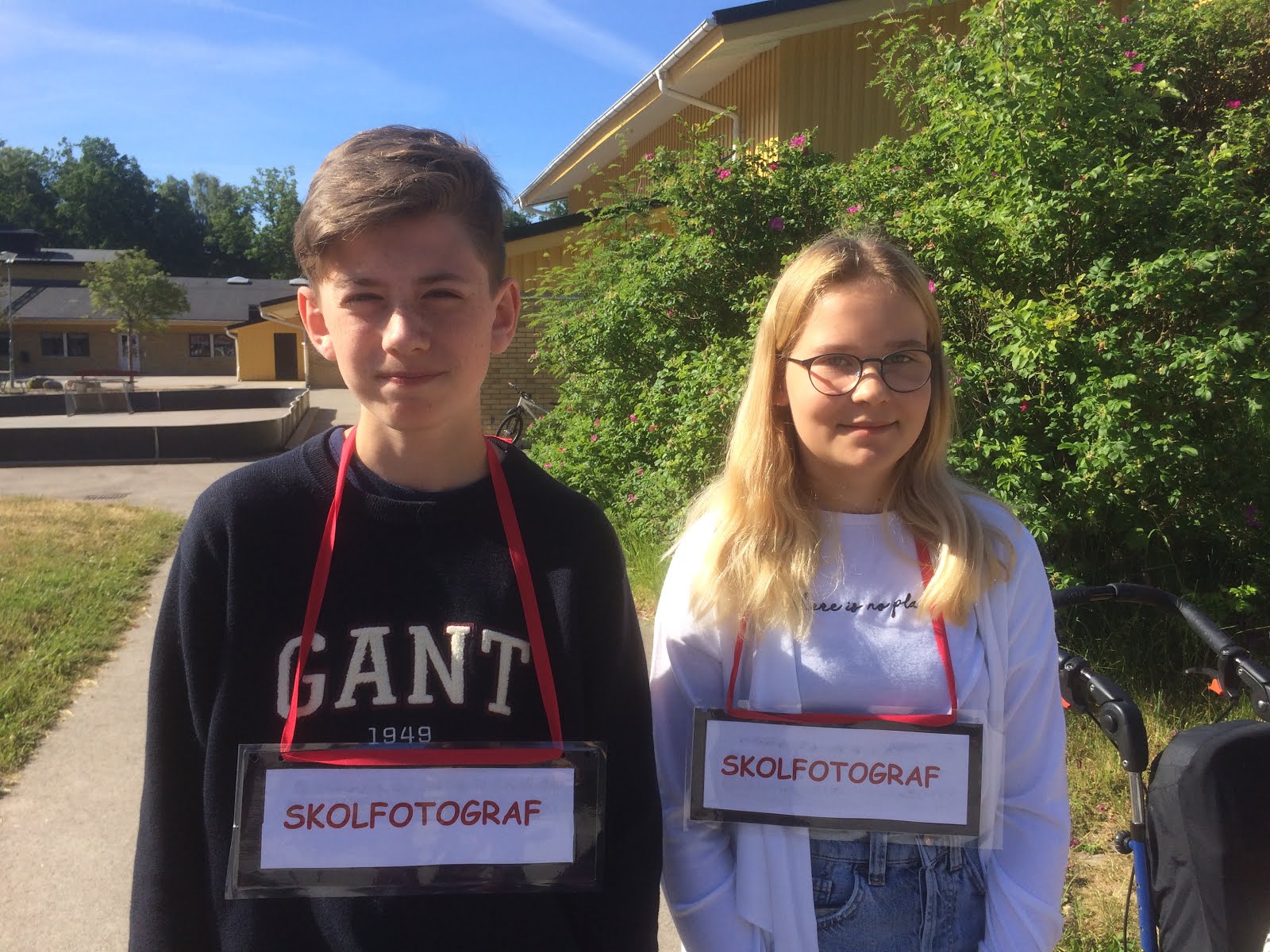 Skolans knattereportar valde att bevaka dagens brännbollsmatch. De fick även agera skolfotografer under matchen.